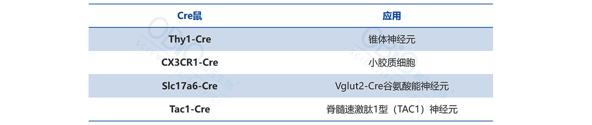 隨著研究的不斷深入,現(xiàn)代神經(jīng)科學(xué)需要關(guān)注大量不同種類的神經(jīng)元或膠質(zhì)細(xì)胞,進(jìn)行精細(xì)研究,除了特異性啟動(dòng)子的應(yīng)用外,還可以借助多種Cre小鼠模型配合DIO病毒策略或flox小鼠策略以實(shí)現(xiàn)特異性操作神經(jīng)元的目的。