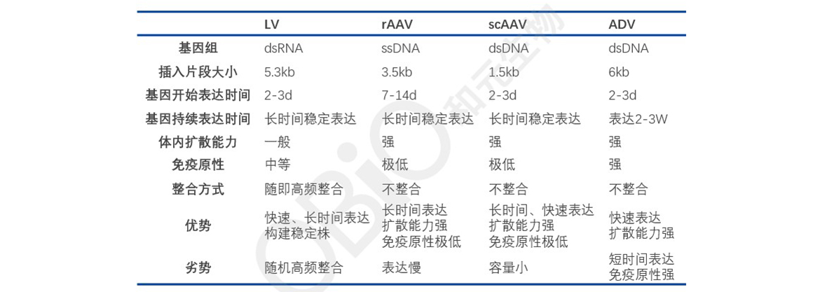 相較于轉(zhuǎn)基因小鼠,借助病毒載體介導(dǎo)的Cre系統(tǒng)實(shí)現(xiàn)特異性操作神經(jīng)元或基因的目的,同時(shí)可以大大縮短實(shí)驗(yàn)的周期,另外,多種多樣的病毒載體,可以最大限度的滿足各類實(shí)驗(yàn)的需求。各類病毒載體的特點(diǎn)如下: